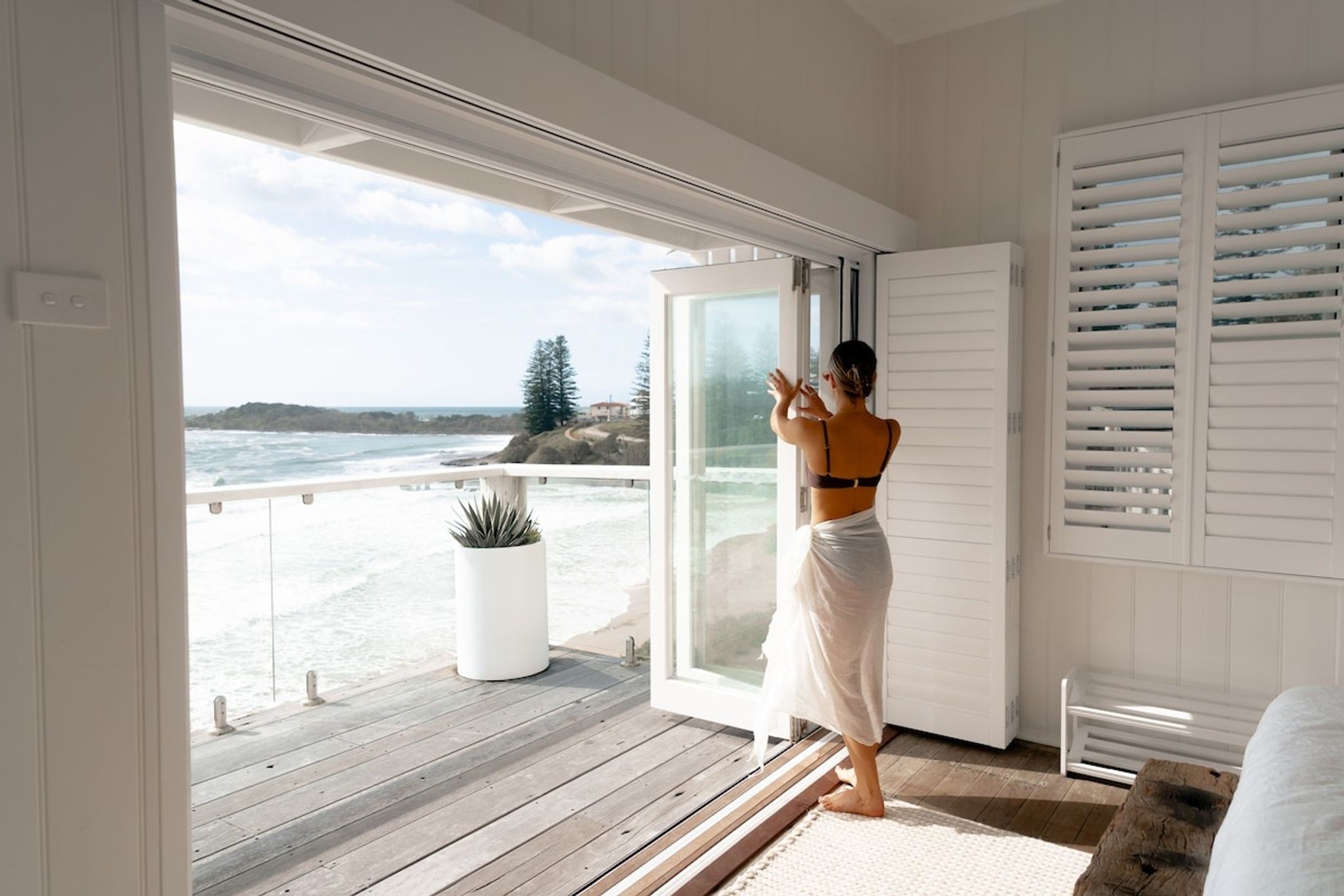 Welcome to The Beach House .. your dream seaside holiday abode, tucked away on the most exclusive parcel of land on Pilot hill. Unmatched views over Main Beach and Lovers Point, whale watching from the comfort of your Egyptian linen sheets, and the gentle sea breeze on your face. Circa 1950 iconic, restored to preserve the integrity of the original cottage. No detail is spared in respect to your contemporary luxuries, The Beach House will give you nostalgia for summer's holidays past. Boutique Accommodation Yamba is readily available 24/7. However, guests can self check in to this property. This listing is for both the top & bottom level of the property