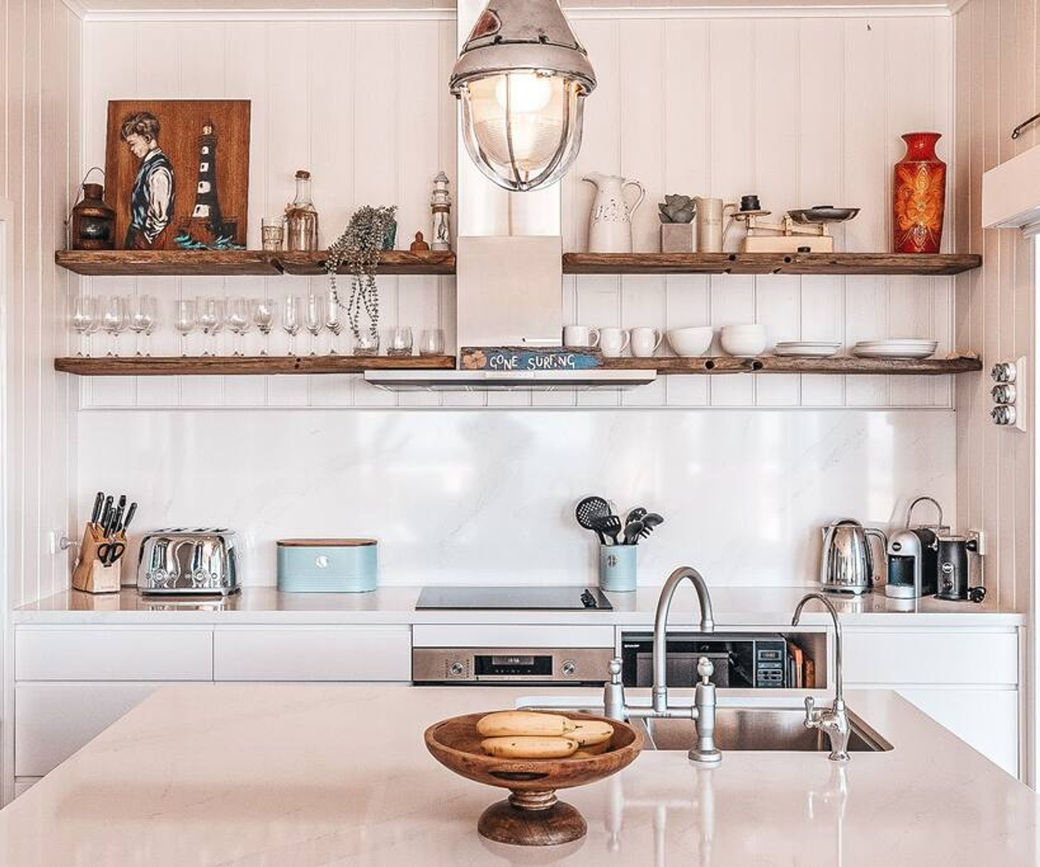 Welcome to The Beach House .. your dream seaside holiday abode, tucked away on the most exclusive parcel of land on Pilot hill. Unmatched views over Main Beach and Lovers Point, whale watching from the comfort of your Egyptian linen sheets, and the gentle sea breeze on your face - are just a few particulars which form the breathtaking backdrop to this very special space. Circa 1950 iconic beach house, newly restored to preserve the integrity of the original cottage. Whilst no detail is spared in respect to your contemporary luxuries, The Beach House will give you the best kind of nostalgia for summer's holidays past. Boutique Accommodation Yamba is readily available 24/7. However, guests can self check in to this property. Yamba is an ocean lovers playground with over 10 beaches to find and explore! The local shopping and cafe strip is all within a stones throw and boasts an ever growing Boutique Cafe Scene. A short drive out to Angourie and you can experience The Blue Pools and a world class surfing reserve. Top it off with taking the ferry over to Iluka to watch the sun go down. Yamba is a small seaside town and is very easy to navigate ! Most venues also provide a courtesy bus so having that relaxing holiday beverage has never been so easy. 5 pristine beaches are located in town and are all walking distance to one another. Bike or take a stroll along our fore shores with the added bonus of taking the ride out along the break wall to see what fish are biting is a must do. Sunny Yamba - one of the best places on earth to visit ! Enjoy your stay ✌️ This is the top floor only