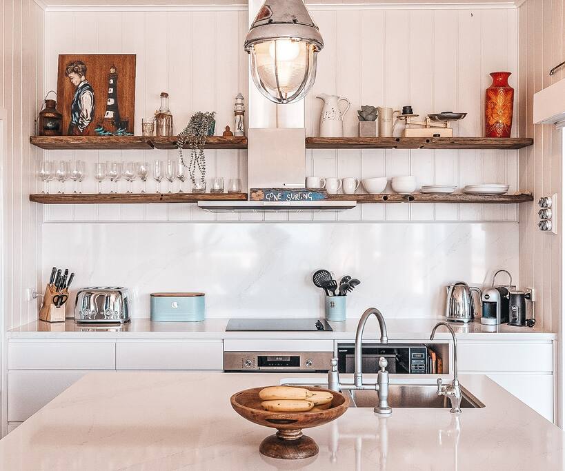 Welcome to The Beach House .. your dream seaside holiday abode, tucked away on the most exclusive parcel of land on Pilot hill. Unmatched views over Main Beach and Lovers Point, whale watching from the comfort of your Egyptian linen sheets, and the gentle sea breeze on your face - are just a few particulars which form the breathtaking backdrop to this very special space. Circa 1950 iconic beach house, newly restored to preserve the integrity of the original cottage. Whilst no detail is spared in respect to your contemporary luxuries, The Beach House will give you the best kind of nostalgia for summer's holidays past. Boutique Accommodation Yamba is readily available 24/7. However, guests can self check in to this property. Yamba is an ocean lovers playground with over 10 beaches to find and explore! The local shopping and cafe strip is all within a stones throw and boasts an ever growing Boutique Cafe Scene. A short drive out to Angourie and you can experience The Blue Pools and a world class surfing reserve. Top it off with taking the ferry over to Iluka to watch the sun go down. Yamba is a small seaside town and is very easy to navigate ! Most venues also provide a courtesy bus so having that relaxing holiday beverage has never been so easy. 5 pristine beaches are located in town and are all walking distance to one another. Bike or take a stroll along our fore shores with the added bonus of taking the ride out along the break wall to see what fish are biting is a must do. Sunny Yamba - one of the best places on earth to visit ! Enjoy your stay ✌️ This is the top floor only