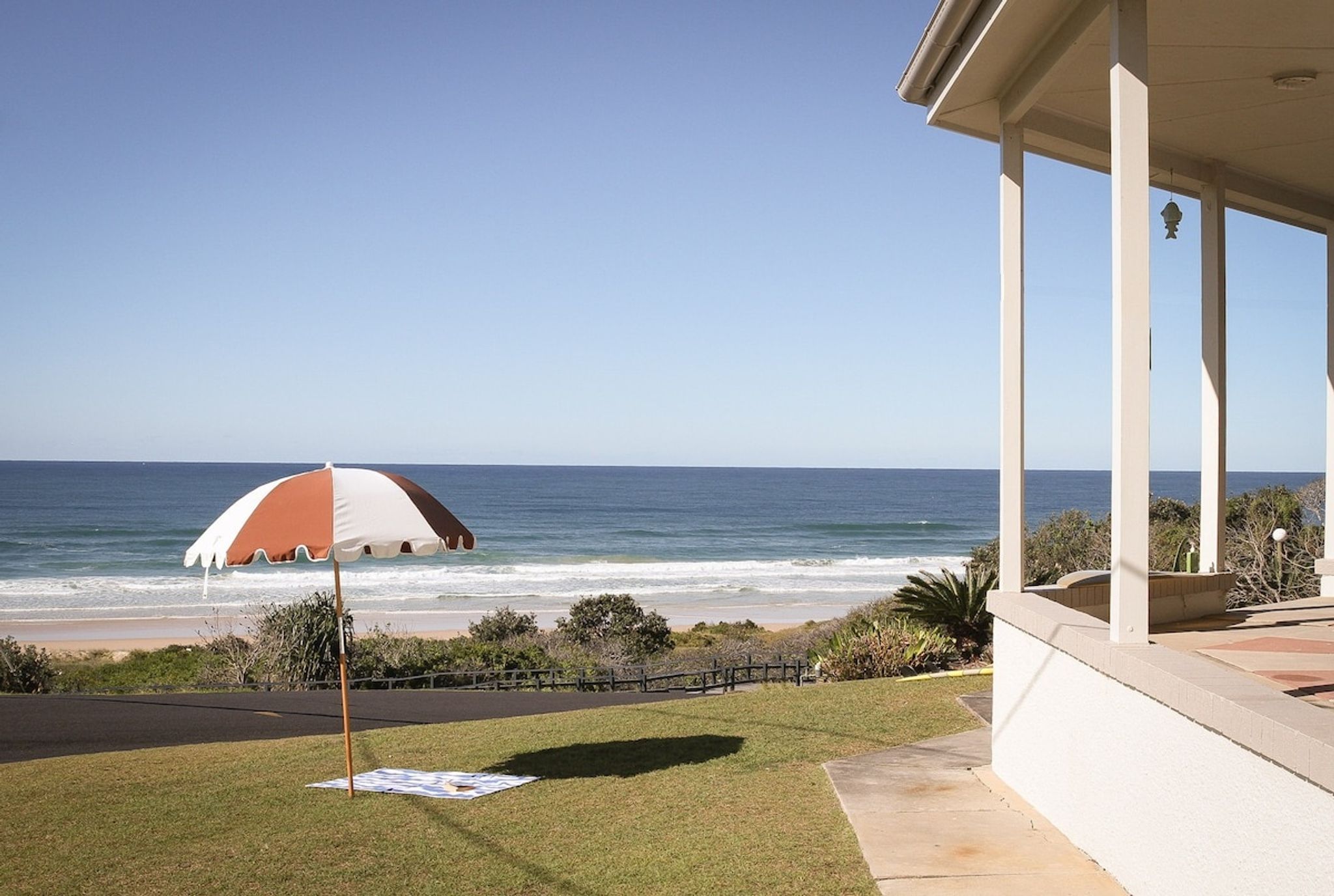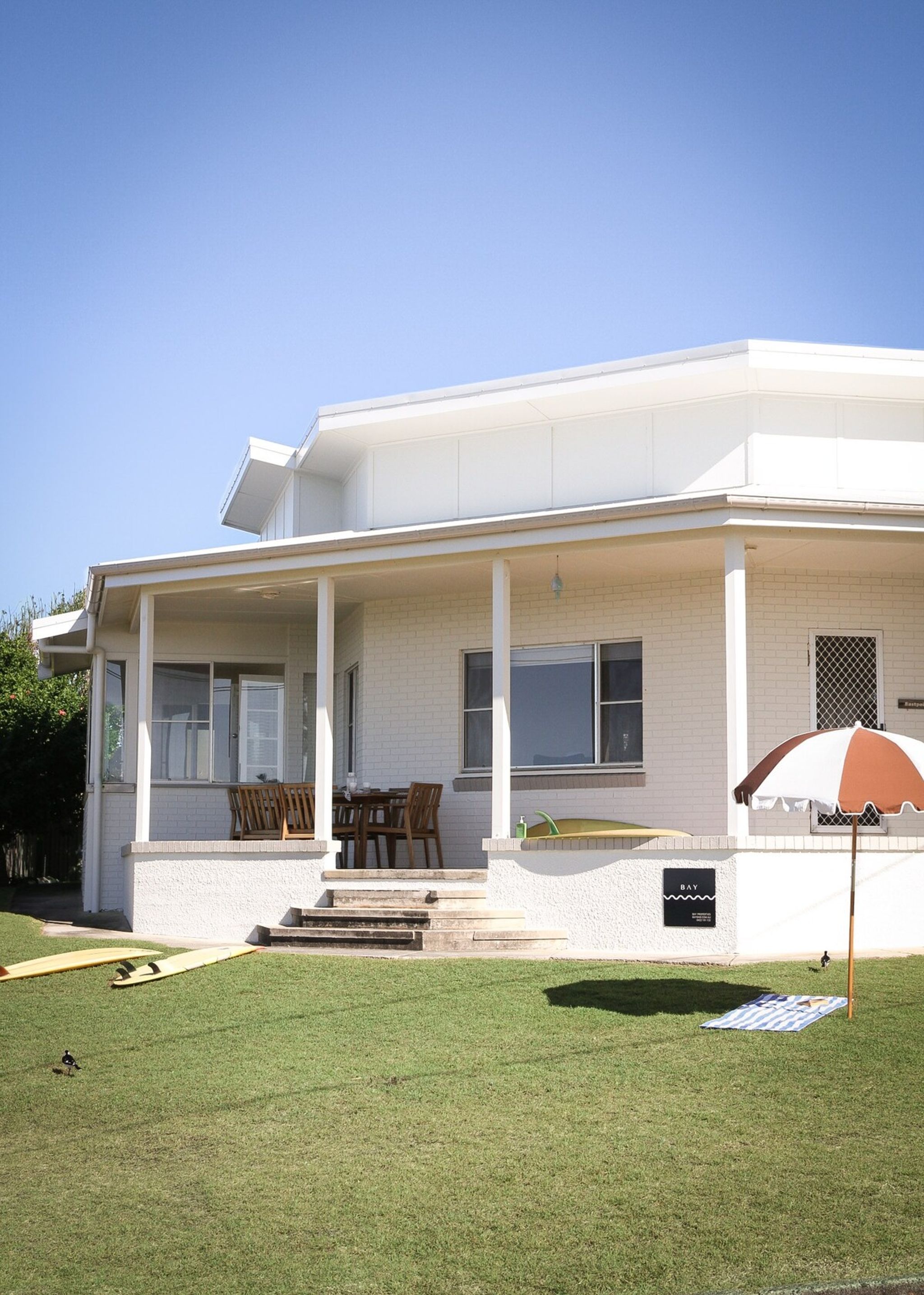 An iconic Yamba beach home at Pippi Beach. Kick back and soak up the best of Yamba in one of its most nostalgic beach pads, now part of the Bay Properties collection. With sweeping 180-degree views of the Pacific Ocean, you can watch the surf peel in while you enjoy your morning coffee or an easy afternoon drink on the patio. This is the kind of place that feels like summer holidays all year round — laid-back, breezy, and made for good times. Here’s what’s on offer: • 3 comfortable bedrooms, 2 bathrooms • Front-row ocean views from the living areas patio and bedrooms • Brand new kids lair with big telly — fun, fresh and perfect for families • Open-plan living with coastal charm and a touch of retro cool • Full kitchen, starlink wifi, and smart TVs • Family-friendly setup with space to chill or gather together • Beachfront access to Pippi Beach • Short stroll to cafes, shops, and town • Affordable for families or small groups, without cutting corners Please note the king beds can be split into singles upon request to accommodate group dynamics. Whether you're here to surf, unwind, or explore the local scene, this is a classic Yamba beach house with all the good vibes and none of the fuss. Drop your bags, kick off your shoes, and make yourself at home.