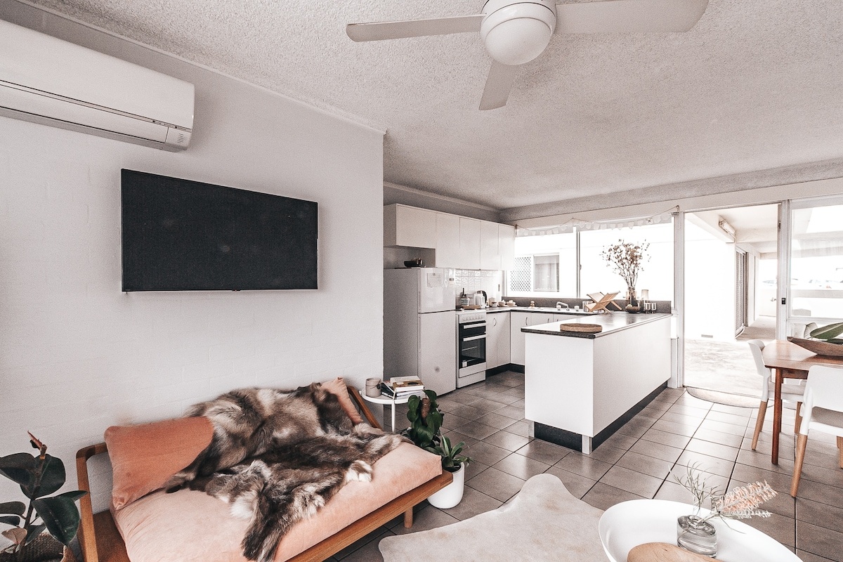 PLEASE READ BEFORE BOOKING Best suited to young travellers or couples that thrive on the action that the Yamba CBD has to offer Renovation scheduled for 2026 – current rates reflect the property’s age. While the space is comfortable, it is not yet newly updated, making it a great-value option for those who prefer location and atmosphere over luxury finishes. Please note there can be noise from bands and passers by. In the heart of the Food Hub & opposite the iconic Pacific Hotel and ocean. Fresh linens and one glance out the window for a sneak peak of Lovers Point and one out the other to check what's on the menu at the cafe strip.