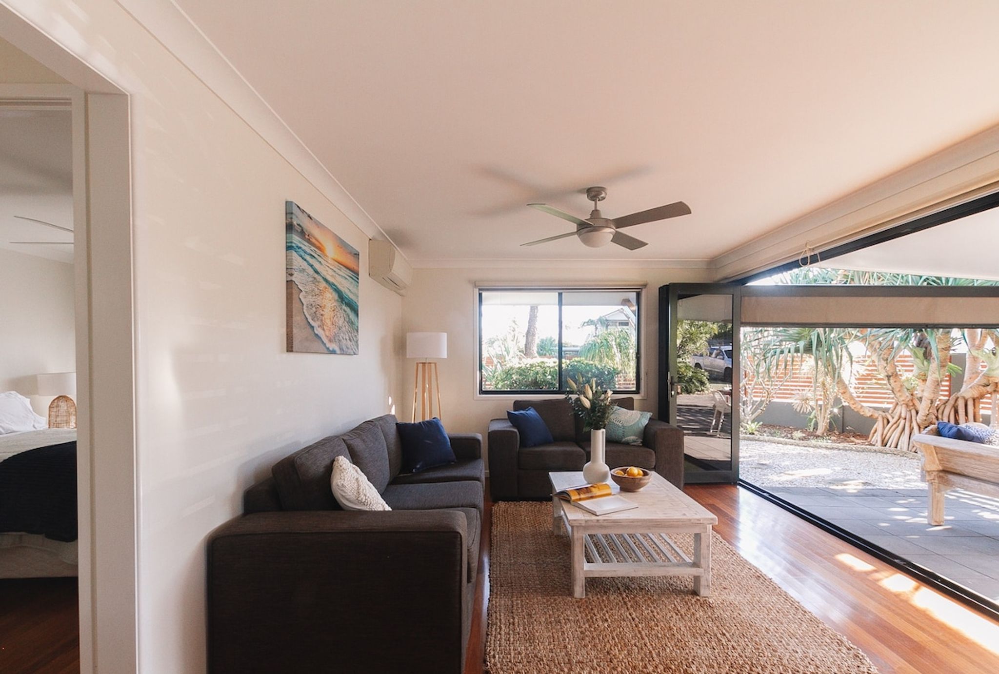 Nestled behind the sand dunes of Pippi Beach sits this well appointed Bungalow. Walk in and find yourself instantly immersed in this lush garden oasis. Enjoy all Yamba has to offer at your finger tips. Carefully curated with relaxation in mind this home away from home will instantly put your mind at ease. A short stroll out the front gate to the reliable beach breaks of Pippi Beach & in the opposite direction a 950m walk to cafe / restaurant hub of Yamba. Comfortable Queen bed and generous lounge & Kitchen / dining area that flow seamlessly into a tropical garden oasis where you can unwind to the sounds of waves breaking & native birds whistling. Yamba is an ocean lovers playground with over 10 beaches to find and explore! The local shopping and cafe strip is all within a stones throw and boasts an ever growing Boutique Cafe Scene. A short drive out to Angourie and you can experience The Blue Pools and a world class surfing reserve. Top it off with taking the ferry over to Iluka to watch the sun go down. Yamba is a small seaside town and is very easy to navigate. Most venues also provide a courtesy bus so having that relaxing holiday beverage has never been so easy. 5 pristine beaches are located in town and are all walking distance to one another. Bike or take a stroll along our fore shores with the added bonus of taking the ride out along the break wall to see what fish are biting is a must do. Sunny Yamba - one of the best places on earth to visit! Enjoy your stay, see you soon.