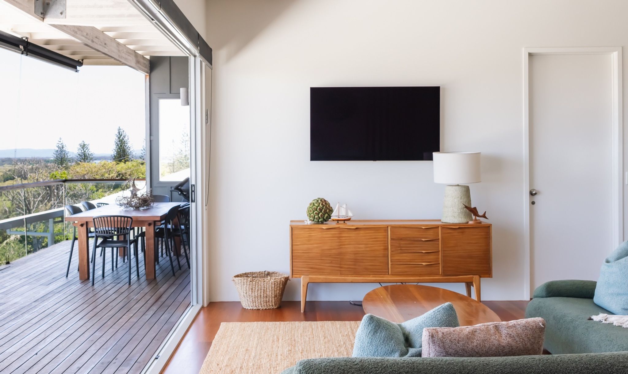 The Big Chill .. pretty much sums it up. Not only is this the perfect space to sit back and watch the show of Yamba unfold with a few glasses of rosé under your belt .. Be assured the kids have their own haunt downstairs to entertain themselves and create memories that last a lifetime. It's a vibe.. Designed with a mid century modern plan. The architectural response creates a house with strong connections between the internal and external spaces, and where each room takes advantage of the spectacular views over the Clarence Valley. Boutique Accommodation Yamba is readily available 24/7. However, guests can self check in to this property. Yamba is an ocean lovers playground with over 10 beaches to find and explore! The local shopping and cafe strip is all within a stones throw and boasts an ever growing Boutique Cafe Scene. A short drive out to Angourie and you can experience The Blue Pools and a world class surfing reserve. Top it off with taking the ferry over to Iluka to watch the sun go down. Yamba is a small seaside town and is very easy to navigate ! Most venues also provide a courtesy bus so having that relaxing holiday beverage has never been so easy. 5 pristine beaches are located in town and are all walking distance to one another. Bike or take a stroll along our fore shores with the added bonus of taking the ride out along the break wall to see what fish are biting is a must do. Sunny Yamba - one of the best places on earth to visit .. Enjoy your stay!