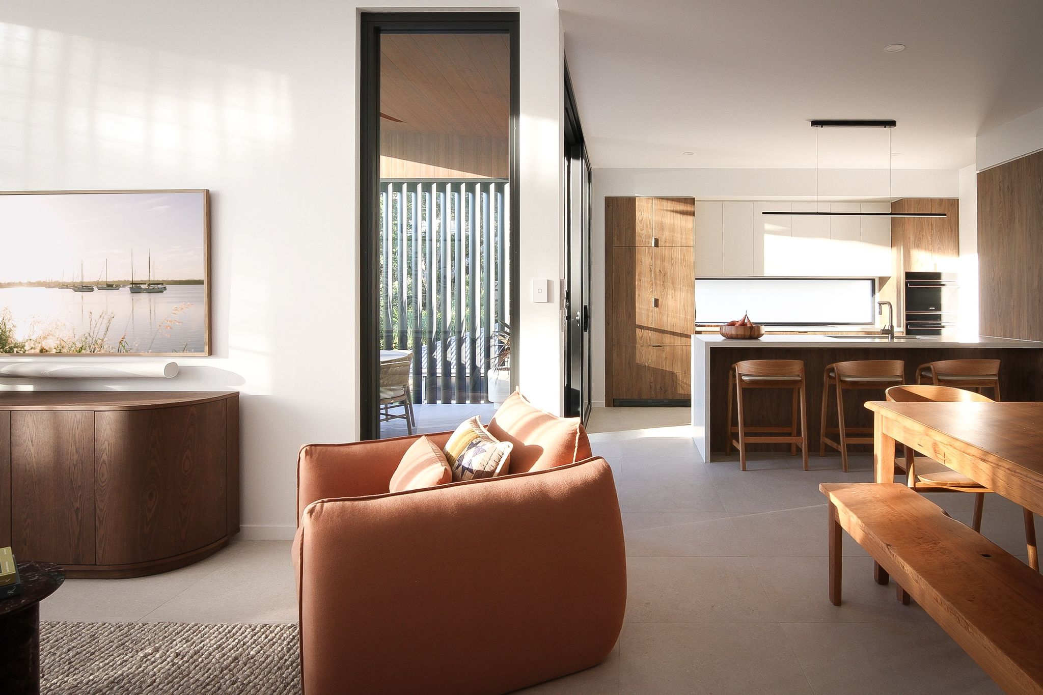 Hi there, I’m new here. Built with strong, clean lines… I was a blank canvas on this patch of Yamba coast. Thanks to careful hands, stories from the outback, and whispers from the ocean on my doorstep. I came to life. One of four… but I’ve always felt a little different. I’m The Breakaway. You’ll find me near the breakwall, where fishermen cast lines at sunrise and surfers chase glassy blue. I’ve grown roots. City soul. Country heart. A bit coastal, a bit cowboy. And now I’m here, waiting. For slow mornings. Long afternoons. And you. Welcome to the latest Bay Properties luxury stay. Experience pure indulgence at our brand-new, high-end retreat on the harbour at Turner’s Beach. Enjoy some fun on our complimentary SUP (stand up paddle board) out the front at whiting beach, followed by a plunge in the pool or rinse off in the outdoor shower. This modern home sleeps 8 in style, offering spacious comfort, the most thoughtful designer finishes, and perfectly central positioning. Split over three levels - filled with natural light, the space has been designed and curated in-house by Bay Properties. Boutique Accommodation Yamba is readily available 24/7. However, guests can self check in to this property.