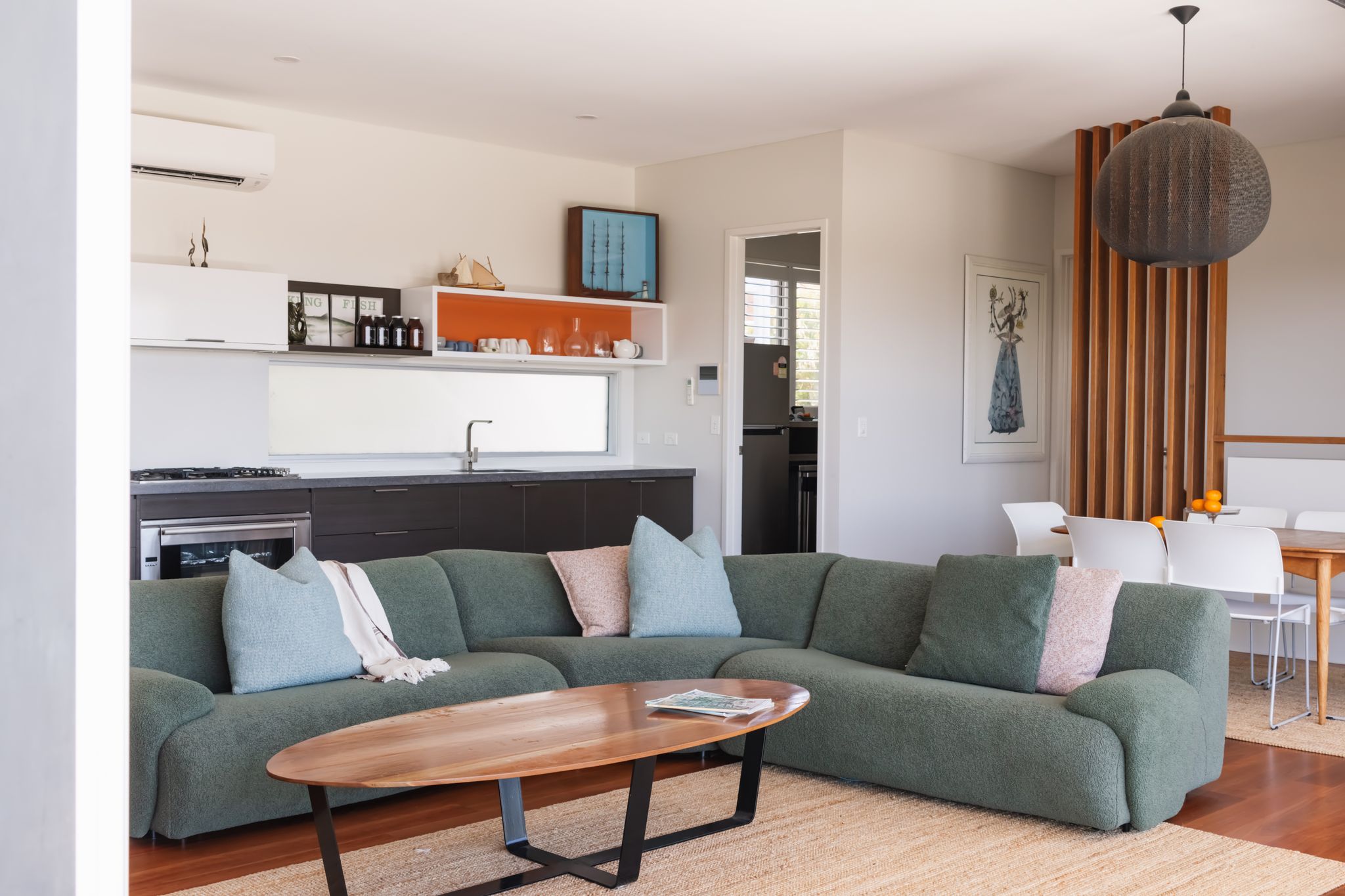 The Chill .. pretty much sums it up. Designed with a mid century modern vibe, taking advantage of the spectacular views over the Clarence Valley. Watch the Yamba show unfold from the extensive deck setup .. fire up the BBQ .. tell some tales and of course .. chill. The architectural response creates a house with strong connections between the internal and external spaces. Many a story will be told and many a memory will be created. It's one of the very best Yamba has to offer. Boutique Accommodation Yamba is readily available 24/7. However, guests can self check in to this property. Yamba is an ocean lovers playground with over 10 beaches to find and explore! The local shopping and cafe strip is all within a stones throw and boasts an ever growing Boutique Cafe Scene. A short drive out to Angourie and you can experience The Blue Pools and a world class surfing reserve. Top it off with taking the ferry over to Iluka to watch the sun go down. Yamba is a small seaside town and is very easy to navigate ! Most venues also provide a courtesy bus so having that relaxing holiday beverage has never been so easy. 5 pristine beaches are located in town and are all walking distance to one another. Bike or take a stroll along our fore shores with the added bonus of taking the ride out along the break wall to see what fish are biting is a must do. Sunny Yamba - one of the best places on earth to visit .. Enjoy your stay!