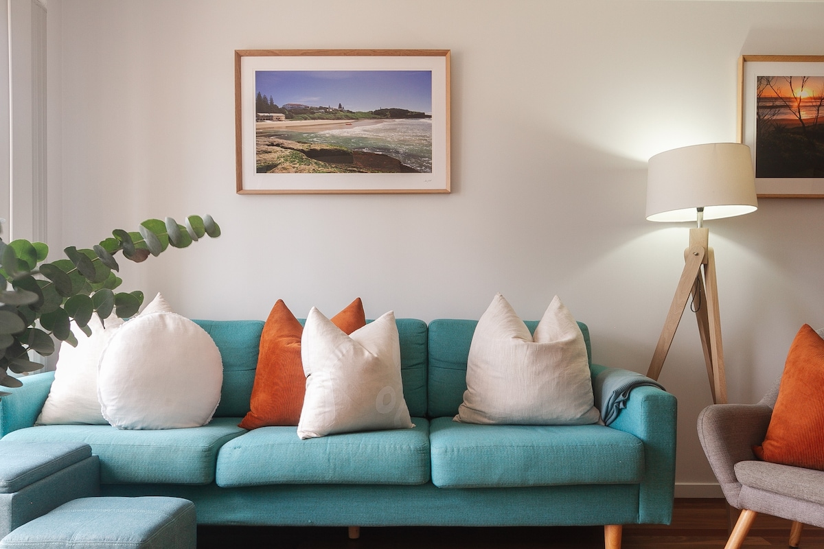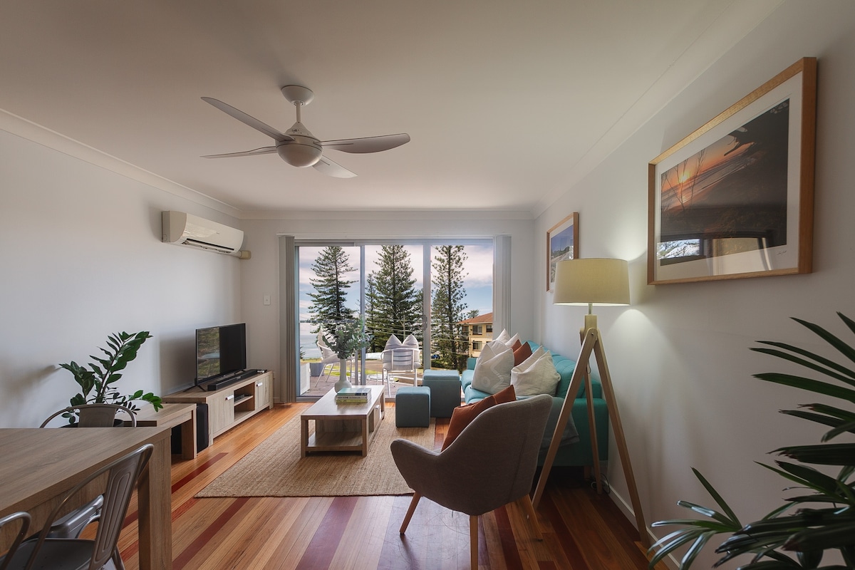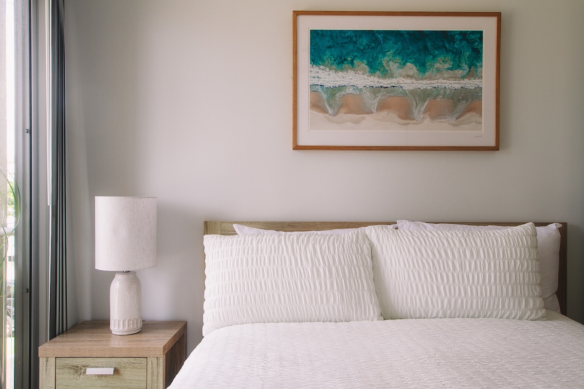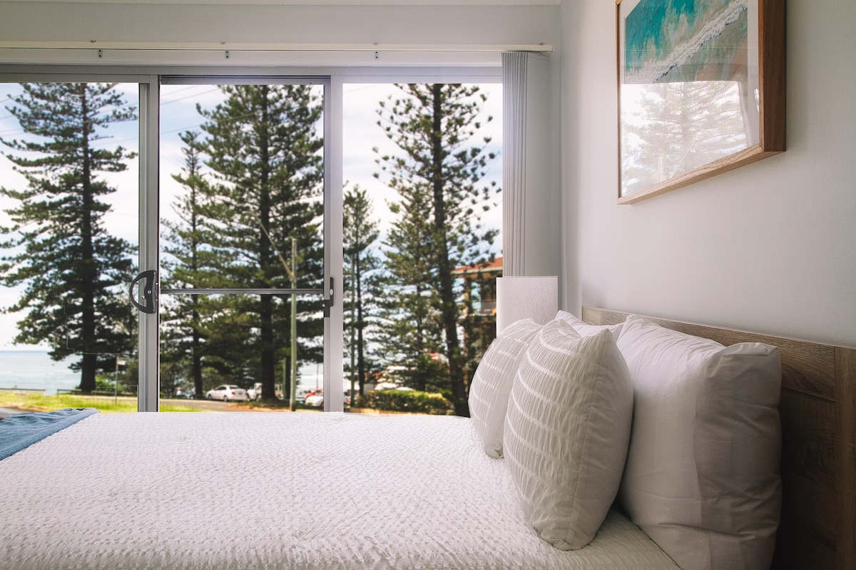 Discover the perfect family getaway in our beachside apartment with a rooftop terrace and lovely sea vistas. Embrace the coastal charm, relax in comfort, and make lasting memories by the waves. Welcome to your home away from home. Elegantly vertical, this tri-level apartment showcases a slender profile, maximising space efficiency and ocean views - which are visible from the master bed & lounge balconies as well as rooftop terrace.